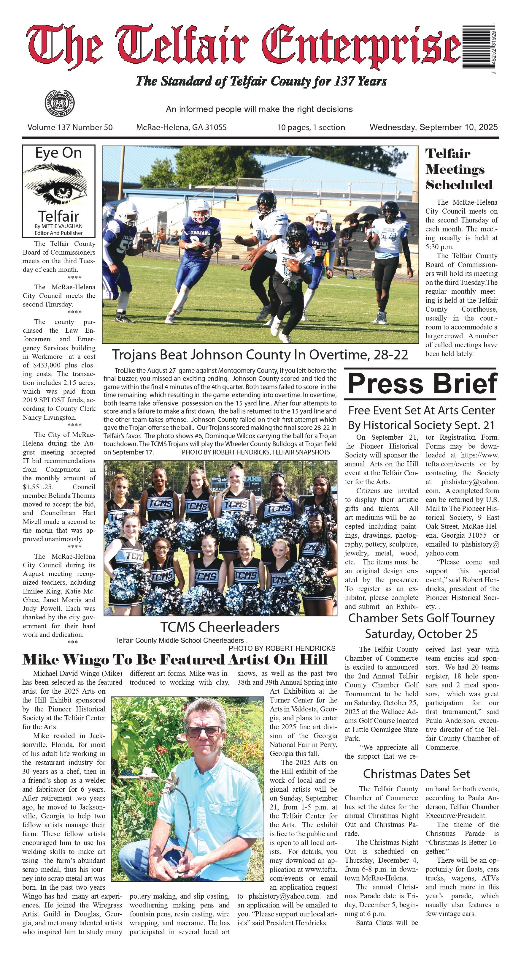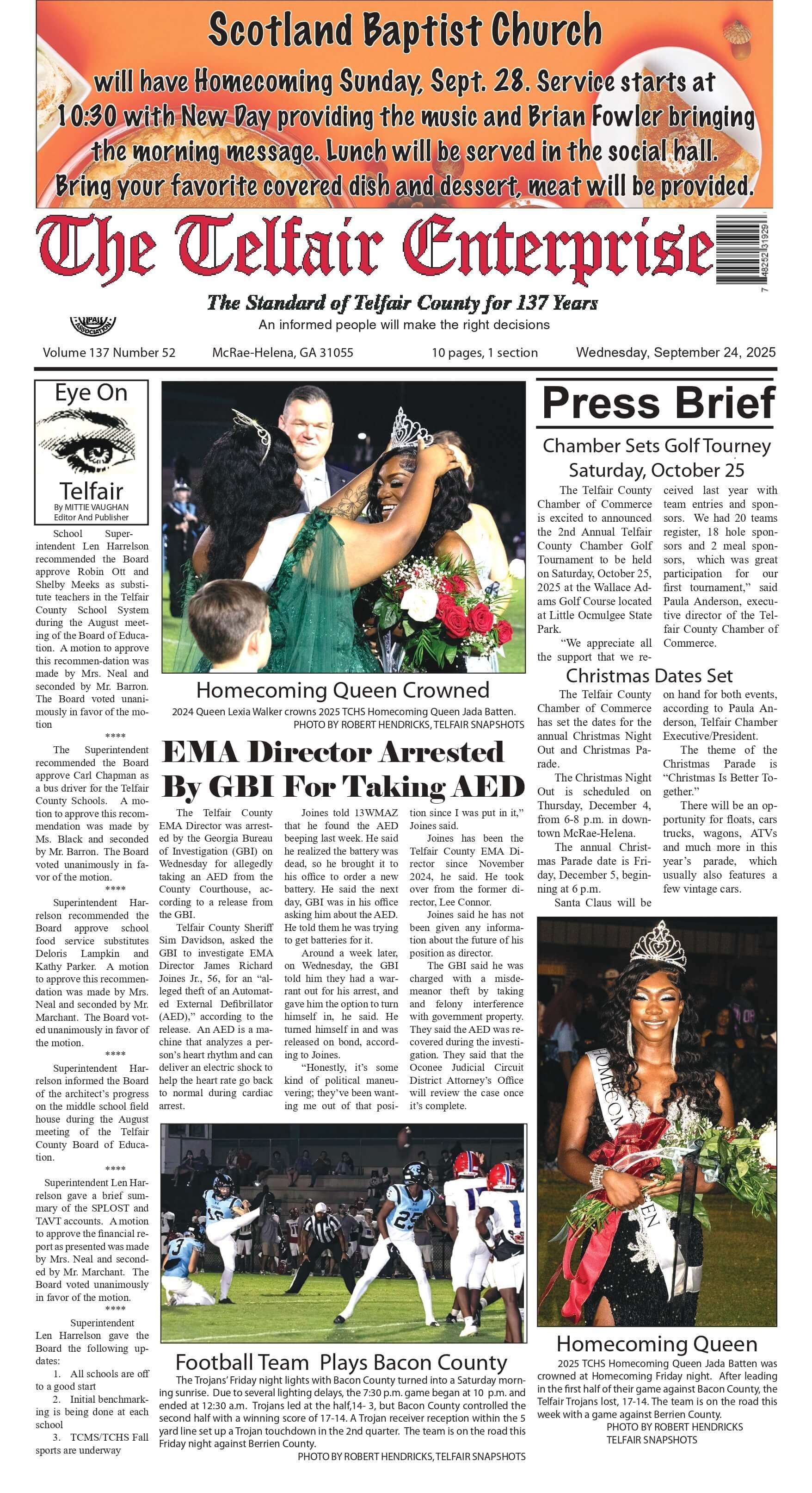 For the last 135 years, The Telfair Enterprise, our beloved local newspaper, has kept Telfair County, Georgia, residents informed. Weekly papers are printed & posted every Wednesday.